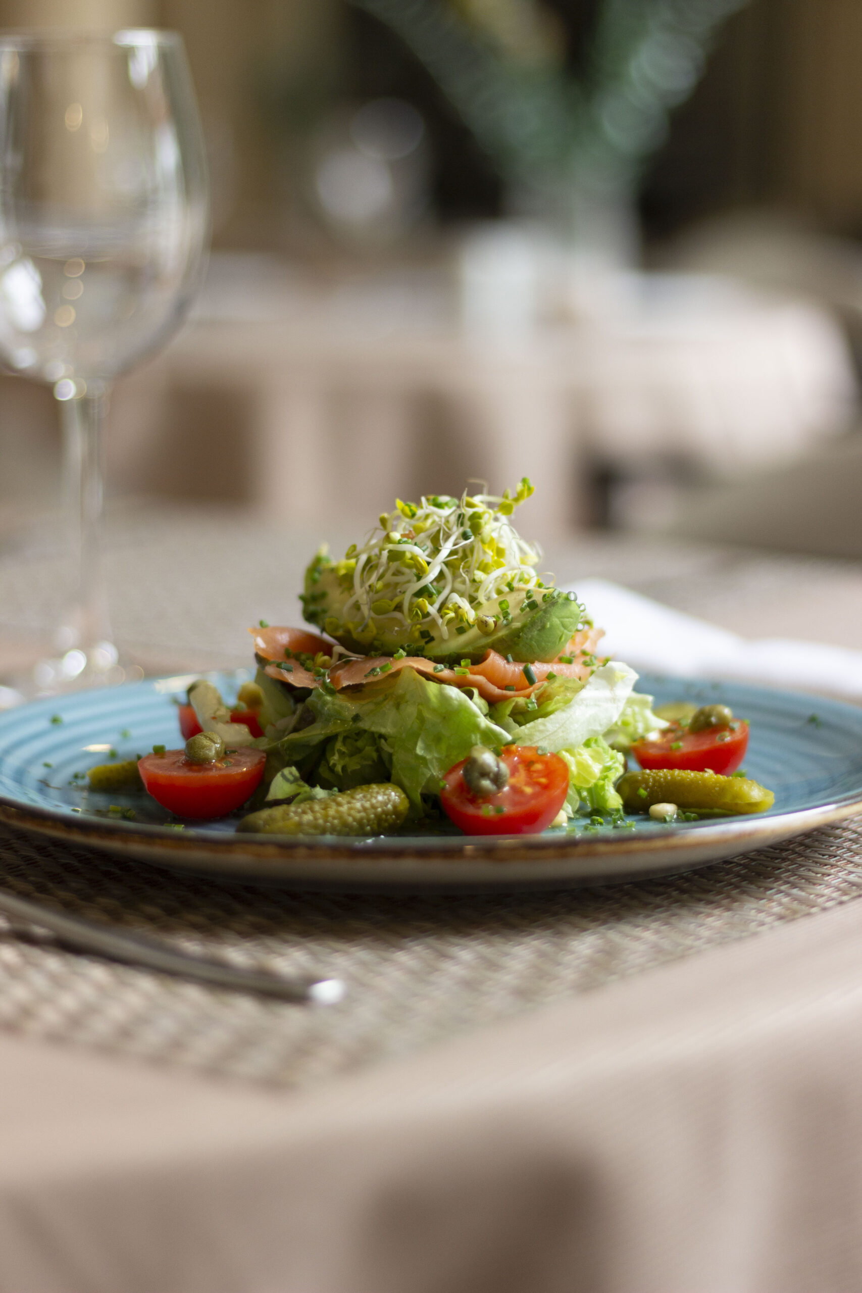 Ensalada de Salmón Ahumado y Aguacate con Piñones a la Mostaza de Miel y Eneldo